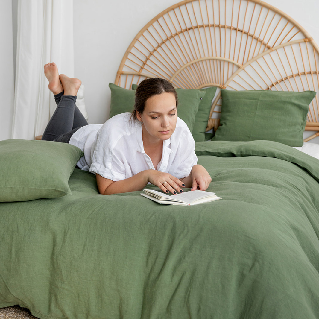 A duvet cover made of OEKO-TEX® Standard 100 and EUROPEAN FLAX® certified 100% linen fabric distinguishes by its luxury appearance and practicality. Crafted from pure linen fibers, this duvet cover offers a super soft and breathable sleeping experience. Linen’s natural texture exudes a rustic elegance, providing a timeless and effortlessly chic look to any bedroom. Linen fabrics exceptional moisture-wicking properties keep you cool in the summer and warm in the winter, making it an excellent choice for year-round comfort. Furthermore, linen is known for its durability, becoming softer with each wash. It ensures that your investment in quality bedding will last for years to come.