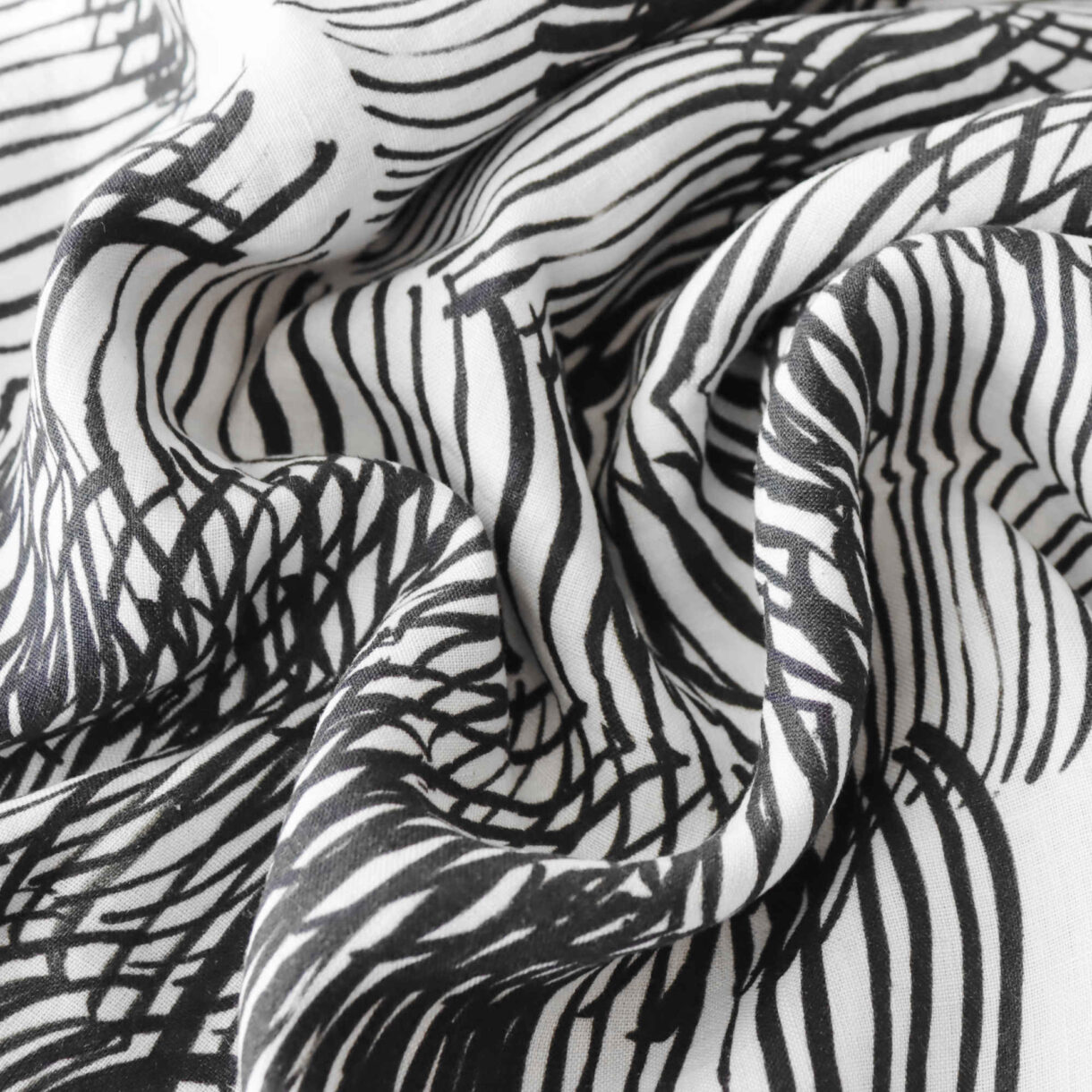 LinenCult’s Monochrome Pulse print linen fabric features a modern, black-and-white design on soft, breathable 160gsm linen. It’s a striking yet versatile fabric for apparel, accessories, or stylish home décor.