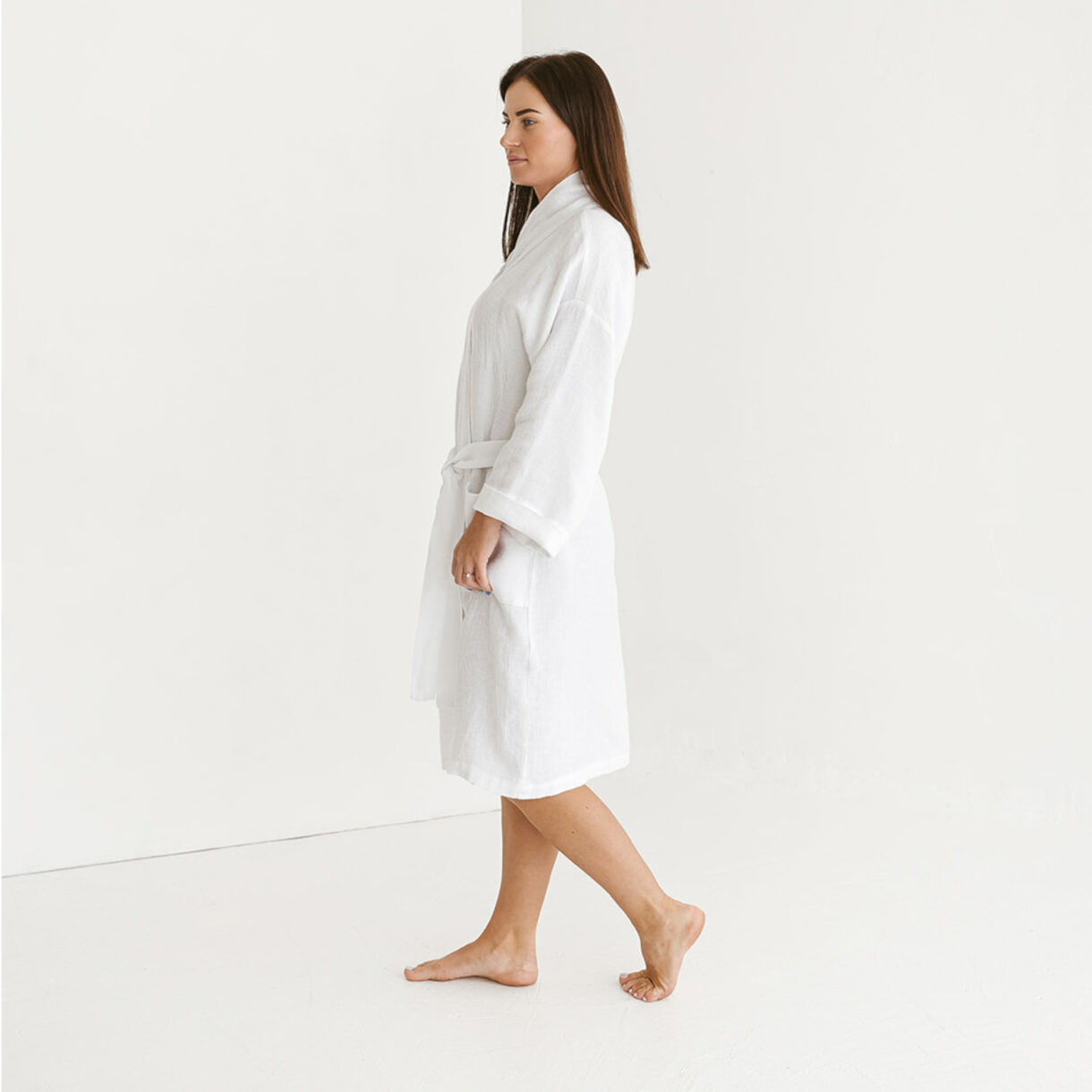 This lightweight yet durable bathrobe features a classic design with a soft, breathable texture that gets softer with every wash. With its timeless elegance and superior absorbency, our linen bathrobe is a must-have addition to your loungewear collection.
